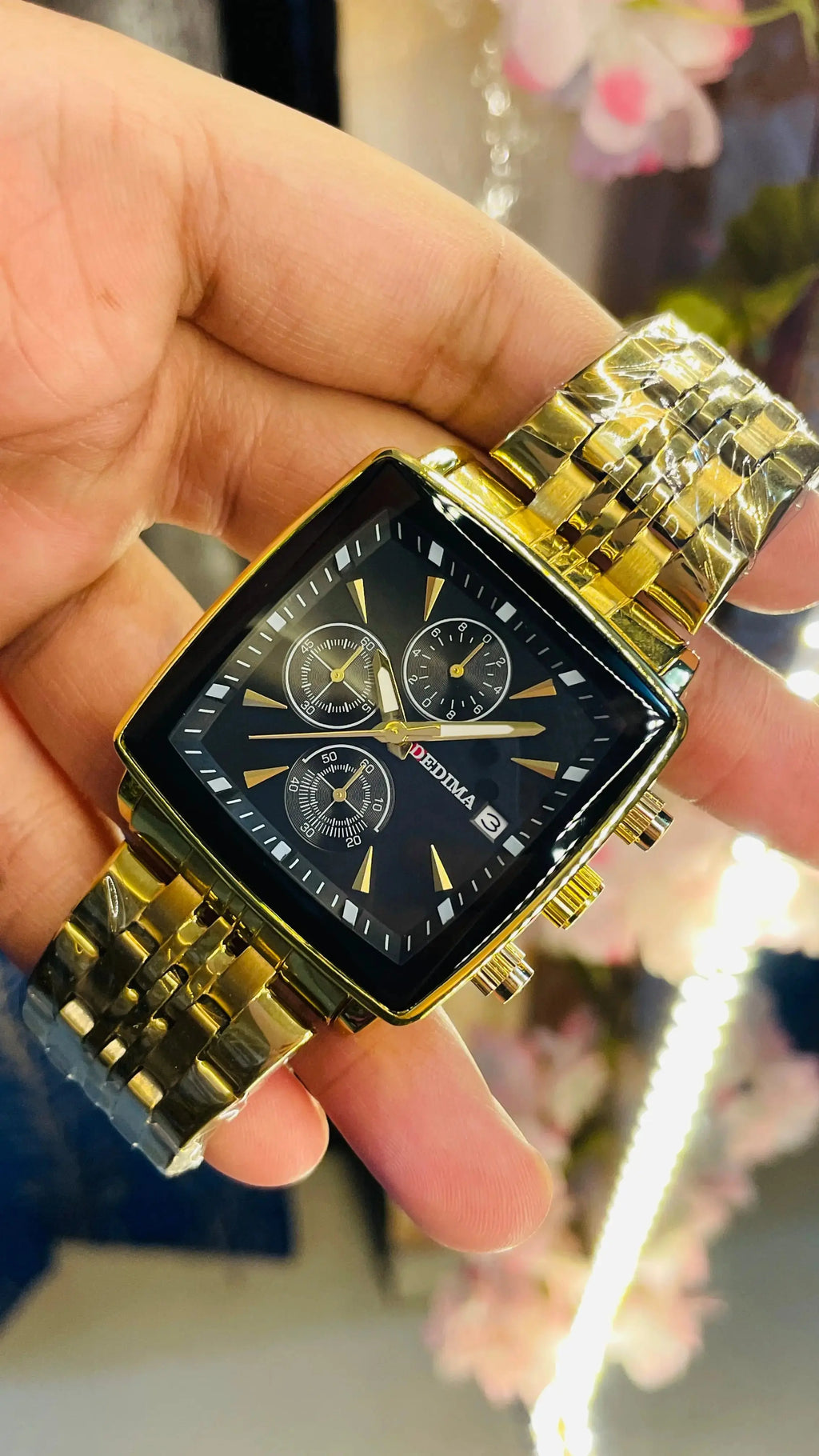 The DEDIMA Swiss brand watch showcases a unique square design that stands out from traditional round watches. This men's chronograph features three eyes and six hands, providing exceptional functionality, such as precise timing for various occasions. Its aesthetics are modern yet timeless, allowing you to wear it on both casual and formal outings. Because of its attention to detail and craftsmanship, this watch is not just an accessory, but a statement piece.