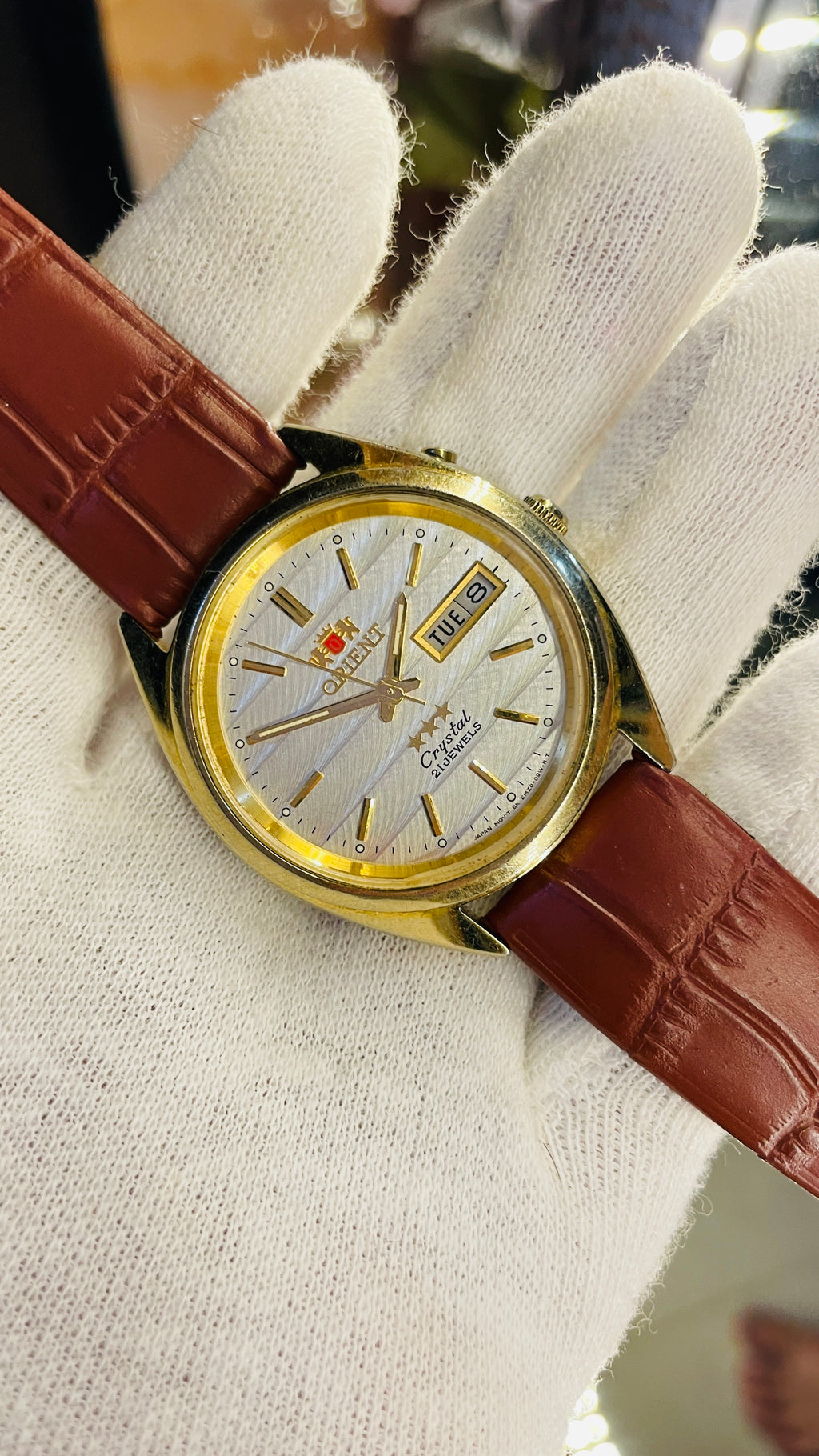 • Step into timeless elegance with the Orient Crystal 21 Jewels Automatic Watch — a true collector’s treasure reborn.